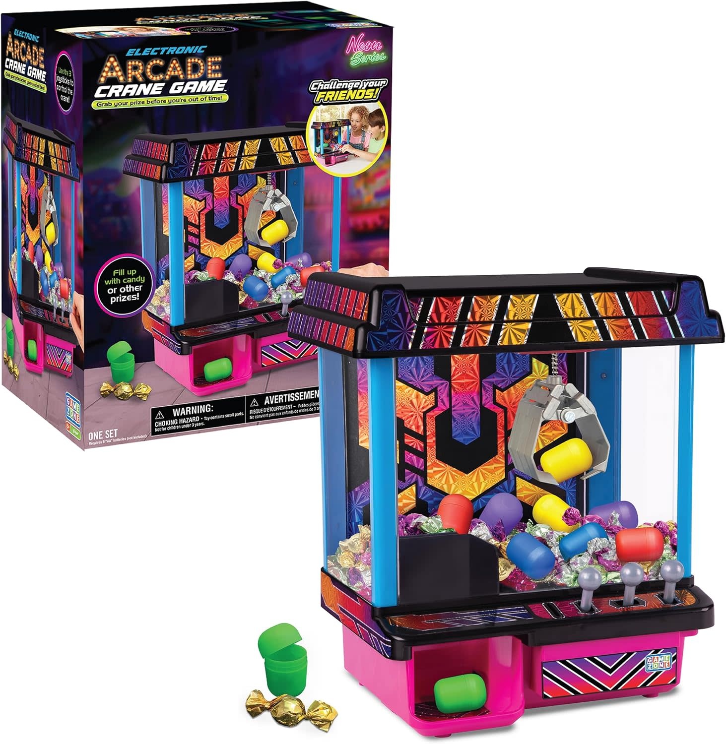 Bring the thrill of the boardwalk and arcade right into your living room with the Game Zone Arcade Crane Game! This at-home claw machine delivers classic fun with sounds and joystick controls—just like the real thing. Fill it with candy, small toys, or other surprises (not included), insert a plastic coin, and see if you can grab your prize before the timer runs out. Perfect for parties, playdates, or family game night, it’s a fun and interactive challenge for kids and adults alike.