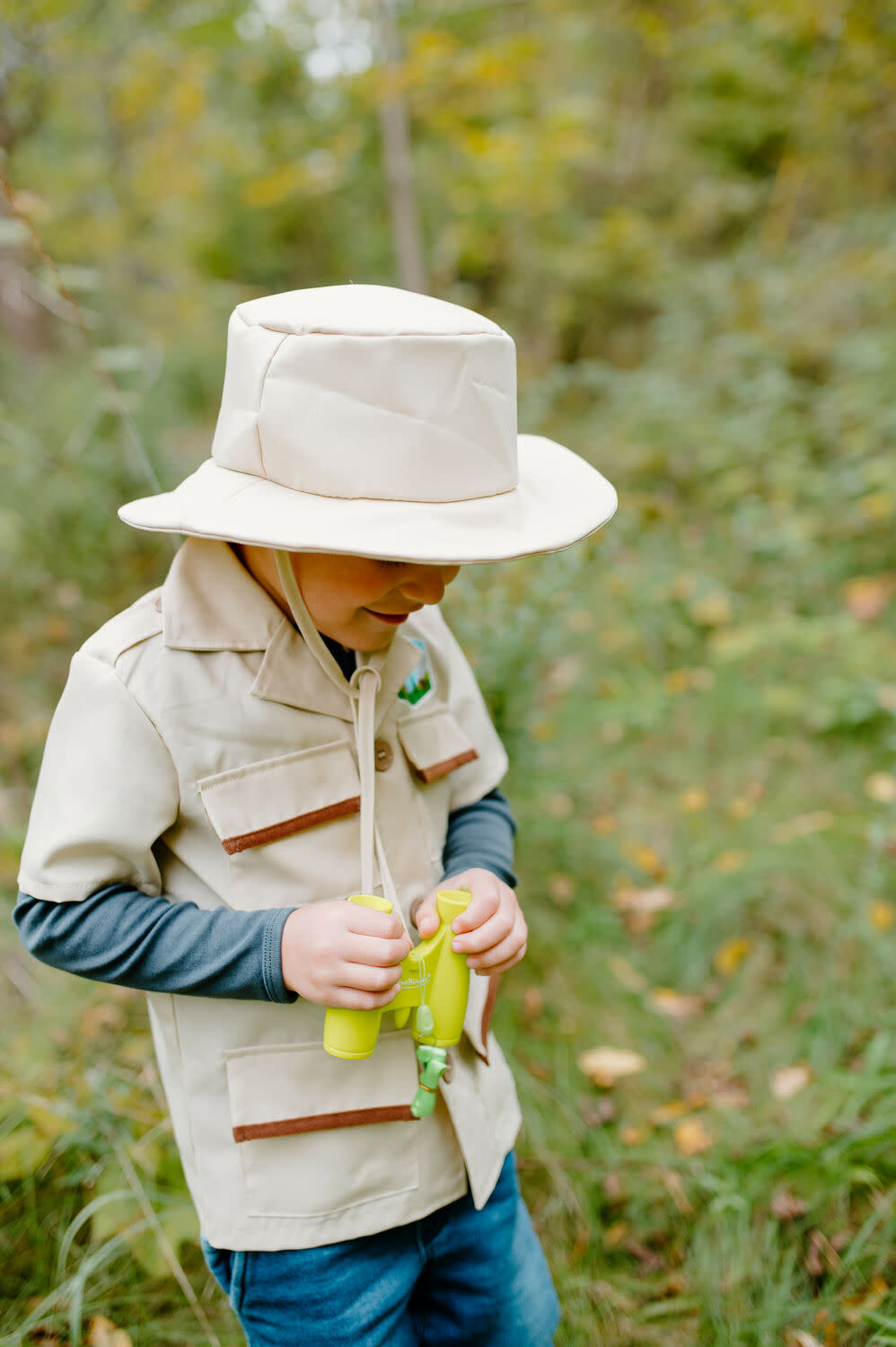 For kids' sizes 5-6. Explore, discover, and imagine with the Forest Guardian Career Costume for kids. This 5-piece dress-up set includes a khaki button-up shirt, safari hat, binoculars, magnifying bug jar, and bug catchers. Perfect for pretend play as a park ranger, safari guide, or paleontologist, this kids career costume encourages outdoor exploration and imaginative play.